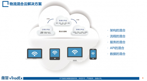 唯智信息物流混合云解決方案支持架構(gòu)的混合、流程的混合、服務(wù)的混合、API的混合以及數(shù)據(jù)的混合。