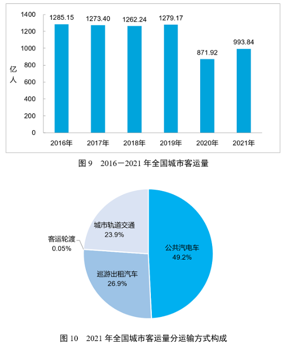 全年完成城市客運(yùn)量993.84億人,比上年增長14.0%。其中,公共汽電車客運(yùn)量489.16億人、運(yùn)營里程335.27億公里,分別增長10.6%和10.7%,城市軌道交通客運(yùn)量237.27億人、增長34.9%,巡游出租汽車客運(yùn)量266.90億人、增長5.4%,城市客運(yùn)輪渡客運(yùn)量0.51億人、增長30.5%。