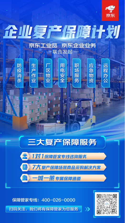 “企業(yè)復產(chǎn)保障計劃”通過整合京東的供應鏈優(yōu)勢資源,首先解決的就是企業(yè)復工復產(chǎn)的高頻物資需求。在復產(chǎn)保障線上專區(qū),企業(yè)能夠快速完成防疫消殺、應急物資、勞動保護、職場服務等不同場景所需的物資采購。京東慧采SaaS專屬采購平臺,支持尋源、在線協(xié)議、電子發(fā)票、自動對賬等功能,幫助企業(yè)實現(xiàn)一站式、無接觸高效采購。還有專人專線的“服務管家”為企業(yè)提供售前、售中、售后全套服務方案。