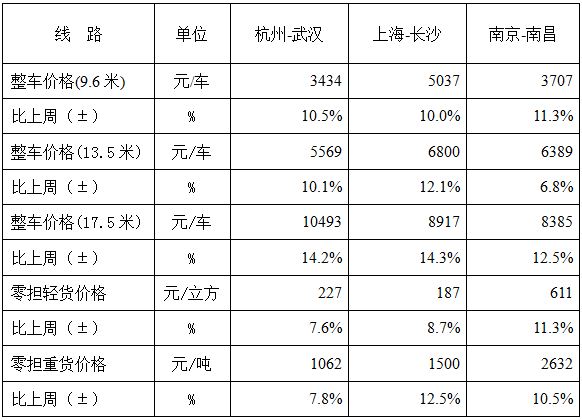 表1 本周部分線路平均價格及環(huán)比情況對比
