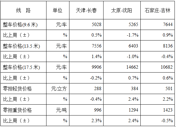 表1 本周部分線路平均價(jià)格及環(huán)比情況對比