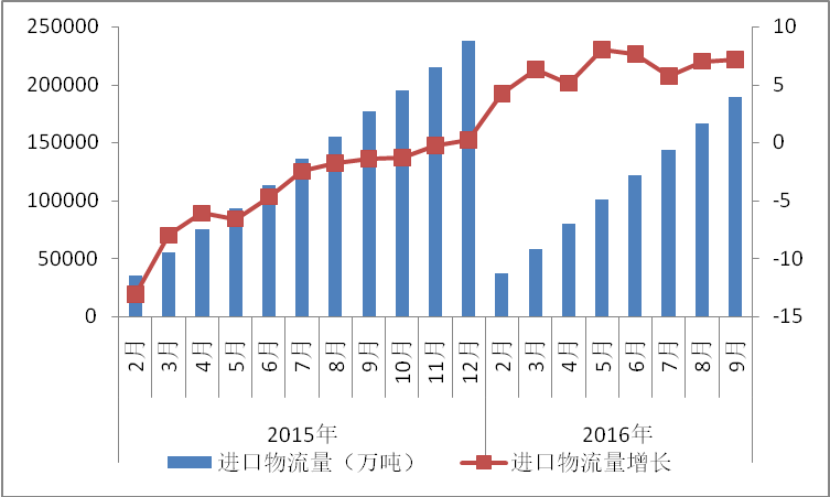 從市場需求看,隨著“去產(chǎn)能”“去庫存”等任務(wù)的實(shí)施舉措不斷落實(shí),產(chǎn)能過剩的局面有望繼續(xù)改善,煤炭、鋼鐵等大宗商品價(jià)格明顯回升,加之基礎(chǔ)建設(shè)投資需求有望在四季度繼續(xù)釋放,工業(yè)經(jīng)濟(jì)階段性筑底跡象明顯,預(yù)計(jì)相關(guān)的工業(yè)物流需求全年有望保持平穩(wěn)增長態(tài)勢;第四季度,隨著消費(fèi)升級的推進(jìn)及節(jié)日消費(fèi)的帶動,與居民消費(fèi)密切相關(guān)的快消品、食品、醫(yī)藥、通信等物流業(yè)務(wù)仍將保持較快增長。預(yù)計(jì)全年社會物流總額增長在6.1-6.2%左右。