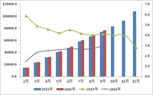 社會庫存明顯回落,周轉(zhuǎn)加快。前三季度,“降成本”“去庫存”等任務(wù)取得了一定實(shí)效。一方面,社會庫存水平明顯回落,數(shù)據(jù)顯示,1-8月規(guī)模以上工業(yè)企業(yè)產(chǎn)成品庫存比上年同期下降1.6%,9月制造業(yè)PMI中的產(chǎn)成品庫存指數(shù)為46.4%,連續(xù)2個(gè)月下降,且低于去年同期。其中特別是水泥、鋼鐵、有色、鋁冶煉等過剩產(chǎn)業(yè)庫存同比均保持下降走勢;另一方面,庫存周轉(zhuǎn)有所加快。中國倉指指數(shù)顯示,平均庫存周轉(zhuǎn)次數(shù)指數(shù)連續(xù)回升,特別是8月升幅明顯加快,升至58.3%,9月在此基礎(chǔ)上再次提高0.2個(gè)百分點(diǎn),創(chuàng)出近六個(gè)月的高點(diǎn)。
