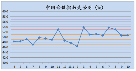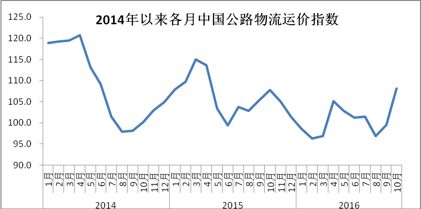 中國物流與采購聯(lián)合會(huì)發(fā)布的2016年10月份中國物流業(yè)景氣指數(shù)為59.2%較上月回升0.2個(gè)百分點(diǎn);中國倉儲(chǔ)指數(shù)為50.7%,較上月回升0.1個(gè)百分點(diǎn);中國公路物流運(yùn)價(jià)指數(shù)為108.1點(diǎn),比上月回升8.7%。