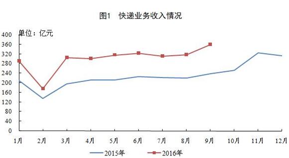9月份,全行業(yè)業(yè)務收入完成471.1億元,同比增長39.4%;業(yè)務總量完成654.2億元,同比增長43.1%。