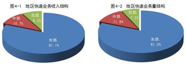 1-9月份,東、中、西部地區(qū)快遞業(yè)務收入的比重分別為81.1%、10.7%和8.2%,業(yè)務量比重分別為81%、11.8%和7.2%。與去年同期相比,東部地區(qū)快遞業(yè)務收入比重下降了0.6個百分點,快遞業(yè)務量比重下降了0.8個百分點;中部地區(qū)快遞業(yè)務收入比重上升了0.3個百分點,快遞業(yè)務量比重上升了0.6個百分點;西部地區(qū)快遞業(yè)務收入比重上升了0.3個百分點,快遞業(yè)務量比重上升了0.2個百分點。