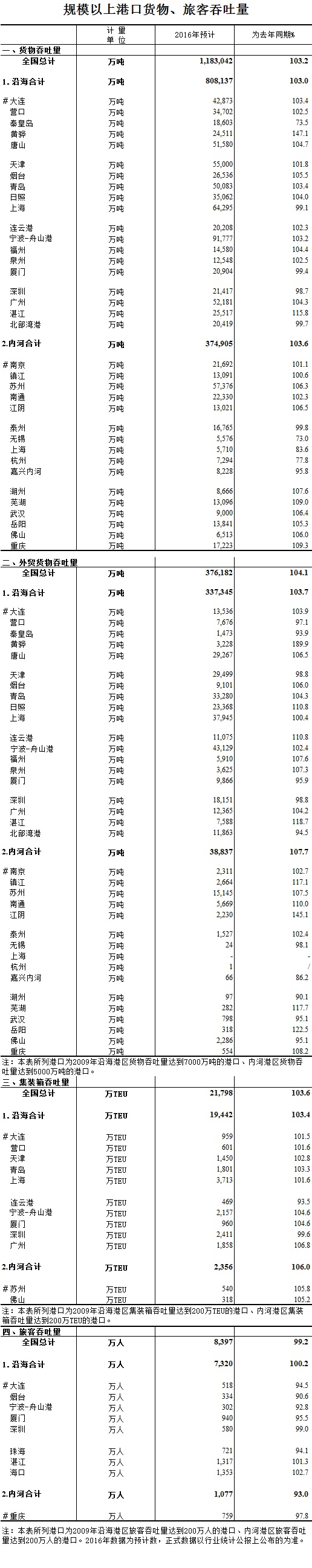 2016年規(guī)模以上港口貨物、旅客吞吐量快報數(shù)據(jù)