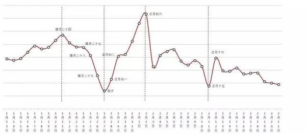 春運(yùn)40天高速公路重要節(jié)點總流量折線圖