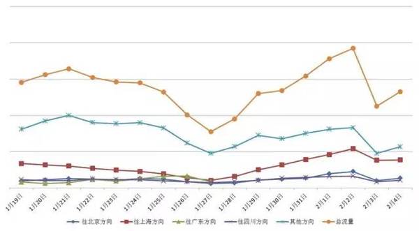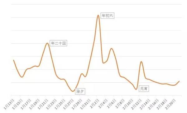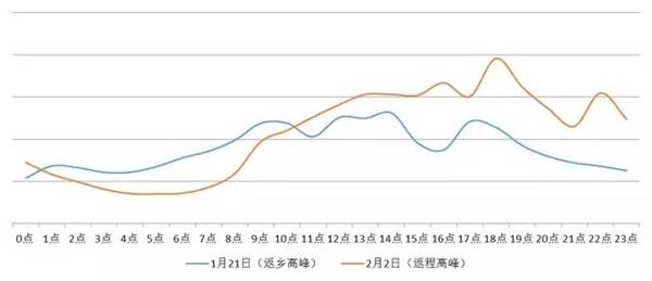 與去年相比,重要節(jié)點總流量同比上升11%。2017年春運(yùn)啟動時間較2016年提前11天,節(jié)前返鄉(xiāng)重要節(jié)點流量高峰較去年相比,具有來得早、時間長、峰值高等特點,節(jié)前高峰出現(xiàn)在春運(yùn)第9天(1月21日),較2016年春運(yùn)提前2天,步入平穩(wěn)高峰并一直持續(xù)至1月24日(臘月二十七)。