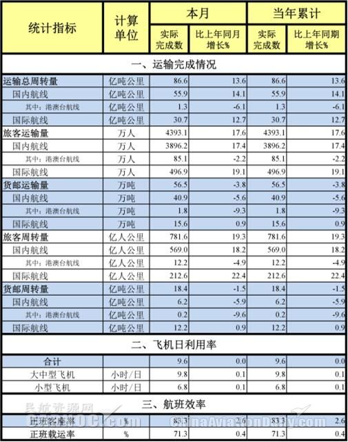 3月20日,民航局官網(wǎng)發(fā)布《中國民航2017年1月份主要運(yùn)輸生產(chǎn)指標(biāo)統(tǒng)計(jì)》,數(shù)據(jù)顯示,2017年1月,中國民航共完成旅客運(yùn)輸量4393.1萬人,比上年同月增長17.6%。國內(nèi)航線完成旅客運(yùn)輸量3896.2萬人,比上年同期增長17.4%。其中,港澳臺航線85.1萬人,比上年同月下降2.2%。國際航線旅客運(yùn)輸量達(dá)496.9萬人,比上年同期增長19.1%。