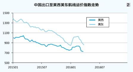 北美航線:運(yùn)輸市場(chǎng)總體處于弱勢(shì)格局。1月初的傳統(tǒng)春節(jié)前發(fā)貨高峰,班輪公司堅(jiān)決推動(dòng)運(yùn)價(jià)上漲計(jì)劃,市場(chǎng)運(yùn)價(jià)自低位獲得明顯提升。但此后受班輪公司加大運(yùn)力投入影響,漲后運(yùn)價(jià)未能企穩(wěn)并呈逐周回落之勢(shì)。隨著春節(jié)的臨近,雖然貨主出貨力度進(jìn)一步加強(qiáng),且有部分班次出現(xiàn)滿載情況,但總體供需關(guān)系不及去年同期,且班輪公司為囤積節(jié)日期間航班貨源而加大了競(jìng)爭(zhēng)力度,原定2月初的運(yùn)價(jià)上漲計(jì)劃僅有小部分班輪公司嘗試,基本宣告失敗。節(jié)后,隨著市場(chǎng)運(yùn)輸需求陷入低谷,部分航班裝載率跌至五成以下。雖然班輪公司大多采取臨時(shí)停航措施應(yīng)對(duì),但在需求不足的情況下班輪公司只能繼續(xù)采用降價(jià)攬貨策略以維持市場(chǎng)份額,市場(chǎng)運(yùn)價(jià)持續(xù)走低。3月25日,上海航運(yùn)交易所發(fā)布的中國(guó)出口至美西、美東航線運(yùn)價(jià)指數(shù)分別為734.1點(diǎn)、882.3點(diǎn),較年初分別下跌3.6%、上升4.2%,一季度平均分別為797.0點(diǎn)、958.4點(diǎn),同比分別下跌21.5%、28.8%(見圖2)。