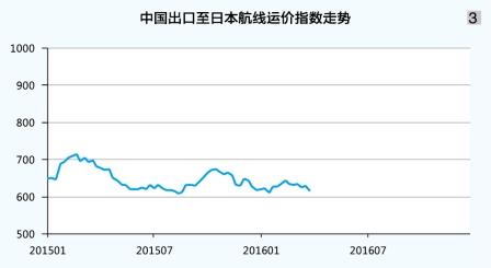 日本航線:市場(chǎng)總體運(yùn)輸需求同比略有增長(zhǎng),但受運(yùn)力基數(shù)過(guò)大影響,上海港船舶平均艙位利用率不足七成,供需關(guān)系疲軟。雖然班輪公司在年初傳統(tǒng)運(yùn)輸旺季陸續(xù)推動(dòng)運(yùn)價(jià)上漲計(jì)劃,但運(yùn)價(jià)漲勢(shì)明顯弱于去年同期,且于節(jié)后開始回落。3月25日,上海航運(yùn)交易所發(fā)布的中國(guó)出口至日本航線運(yùn)價(jià)指數(shù)為631.1點(diǎn),較年初上升1.8%,一季度平均為628.4點(diǎn),同比下跌8.3%(見圖3)。
