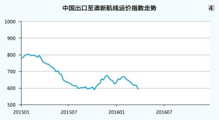 澳新航線:運(yùn)價(jià)低位震蕩。雖然眾多班輪公司于1月初陸續(xù)提漲運(yùn)價(jià),但因缺少貨量支撐,運(yùn)價(jià)在運(yùn)輸旺季僅獲小幅提振。節(jié)后隨著貨量陷入低迷,班輪公司采取相應(yīng)運(yùn)力收縮措施,供需關(guān)系總體不佳,市場(chǎng)運(yùn)價(jià)逐周下降。3月25日,上海航運(yùn)交易所發(fā)布的中國(guó)出口至澳新航線運(yùn)價(jià)指數(shù)為618.0點(diǎn),較年初下跌2.8%,一季度平均為642.2點(diǎn),同比下跌18.9%(見圖4)。