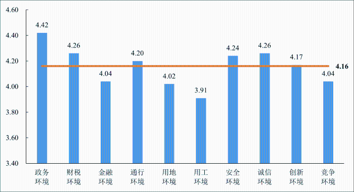 調(diào)查數(shù)據(jù)顯示,物流企業(yè)營商環(huán)境*評價(jià)總體向好,被調(diào)查企業(yè)對全國營商環(huán)境各細(xì)分項(xiàng)平均分為4.16分(滿分為5分、下同),總體比較滿意。