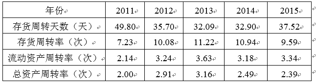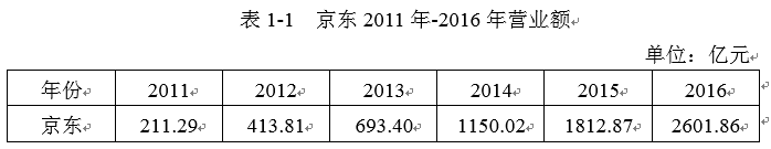 表1-2 京東2011年-2015年周轉(zhuǎn)天數(shù)和周轉(zhuǎn)率