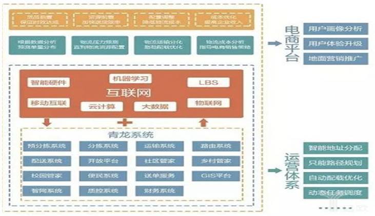 a.大數(shù)據(jù)整合驅(qū)動運行:未來的時代必定是算法的時代,大數(shù)據(jù)驅(qū)動供應(yīng)鏈是未來電商企業(yè)發(fā)展的必然趨勢,京東依托于近10年的數(shù)據(jù)收集和平臺上2.4億的消費者的數(shù)據(jù),與供應(yīng)商、電商打通供應(yīng)鏈數(shù)據(jù)壁壘,核心物流系統(tǒng)——青龍系統(tǒng)、倉儲管理系統(tǒng)——玄武系統(tǒng)等支撐著數(shù)據(jù)的整合預(yù)測。種種加持下,京東的精準服務(wù)有望更進一步。