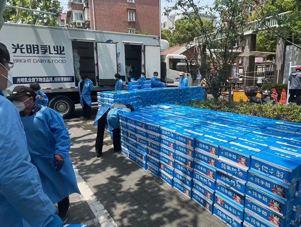 保供期間,光明領(lǐng)鮮物流除了做好光明牛奶產(chǎn)品的保供配送,還全力服務(wù)于公益活動,在此期間,領(lǐng)鮮物流臨時啟用浦東新區(qū)的成山路乳品八廠倉庫作為中轉(zhuǎn)樞紐,為全市60000多名獨孤老人、周浦醫(yī)院的醫(yī)務(wù)工作者、衛(wèi)計委、臨汾路等街道送上牛奶、糧油、豬肉、蔬菜等保供物資,累計總配送車次300趟次,總保障噸位達(dá)680噸。