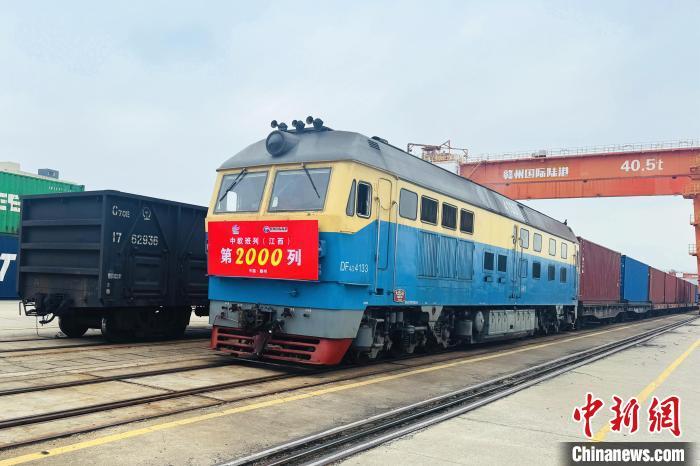 11月19日電(吳鵬泉劉立平)11月19日,隨著X8208次中歐班列從江西贛州國際陸港緩緩駛出,江西中歐班列累計(jì)開行數(shù)量突破2000列。