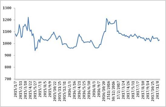 圖 1 2015-2017年各周中國公路物流運(yùn)價(jià)指數(shù)