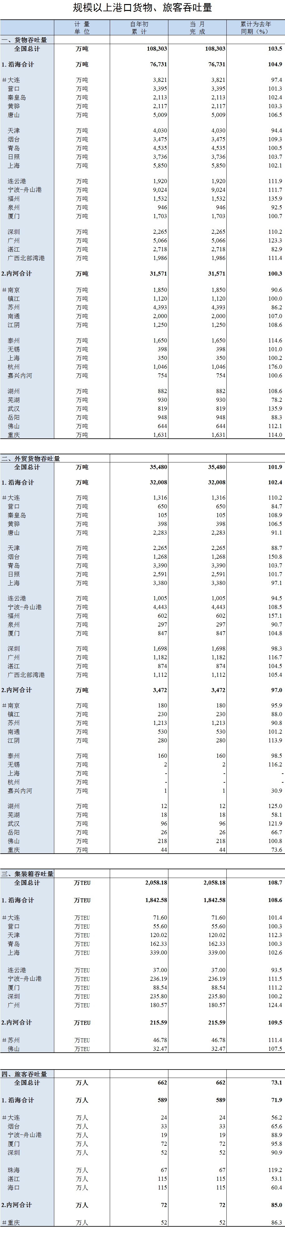 2018年1月規(guī)模以上港口貨物、旅客吞吐量