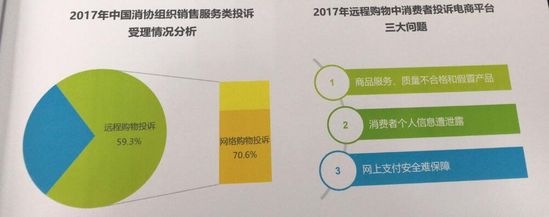 在遠程購物中,消費者投訴的對象包括電商平臺、以微商為代表的個人網絡商家和電視購物等。其中,電商平臺被投訴的三大問題為:商品服務、質量不合格和假冒商品問題;消費者個人信息遭泄露;網上支付安全難保障。