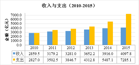 與2010年至2014年(收支平衡結(jié)果依次為:-137.7億元、-209.0億元、-506.3億元、-559.5億元和-1293.7億元)相比,收支缺口進(jìn)一步擴(kuò)大。
