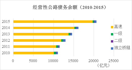 與2014年相比,全國(guó)收費(fèi)公路債務(wù)余額凈增6042.3億元,增長(zhǎng)15.7%。