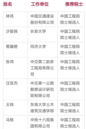 截至2月20日,全國已有多個學(xué)會和?。ㄊ小^(qū))科協(xié)陸續(xù)公示了2017年院士候選人。據(jù)不完全統(tǒng)計,交通運(yùn)輸領(lǐng)域有以下候選人(排序不分先后):