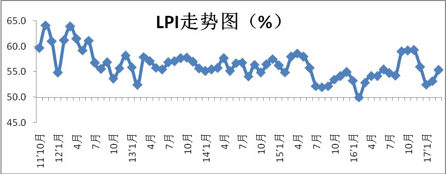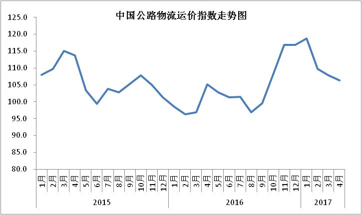 中國物流與采購聯(lián)合會發(fā)布的2017年4月份中國物流業(yè)景氣指數(shù)為58.2%較上月回升2.8個(gè)百分點(diǎn);中國倉儲指數(shù)為55.1%,較上月回升0.6個(gè)百分點(diǎn);中國公路物流運(yùn)價(jià)指數(shù)為106.3點(diǎn),比上月回落1.5%。