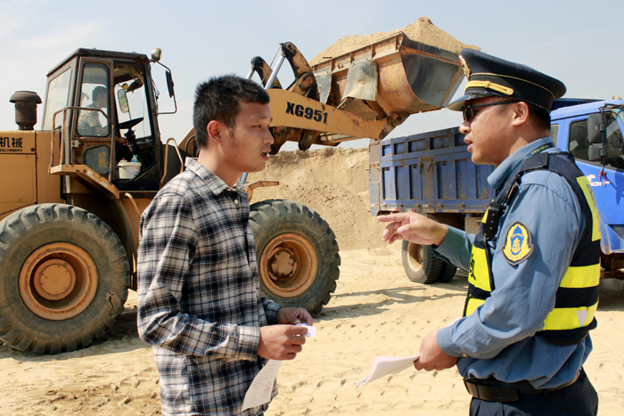 針對(duì)進(jìn)賢縣沙廠多、運(yùn)載河沙貨車超限率高等現(xiàn)狀,江西南昌進(jìn)賢治超點(diǎn)執(zhí)法人員深入沙場(chǎng)宣傳新政新規(guī)。執(zhí)法人員一邊發(fā)放宣傳資料,一邊向前來(lái)咨詢了解的司機(jī)耐心細(xì)致地進(jìn)行講解,講解統(tǒng)一超限超載認(rèn)定標(biāo)準(zhǔn)的目的、意義、主要內(nèi)容、治理超限運(yùn)輸?shù)闹匾缘龋顾緳C(jī)認(rèn)識(shí)到超限超載運(yùn)輸對(duì)公路、橋梁造成的危害,樹立合法裝載運(yùn)輸意識(shí),從源頭上杜絕惡意超限運(yùn)輸行為。(鄭建國(guó))