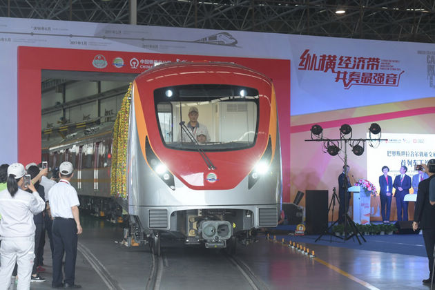 5月15日,巴基斯坦拉合爾軌道交通橙線項(xiàng)目首列地鐵列車(chē)在中車(chē)株洲電力機(jī)車(chē)有限公司下線。